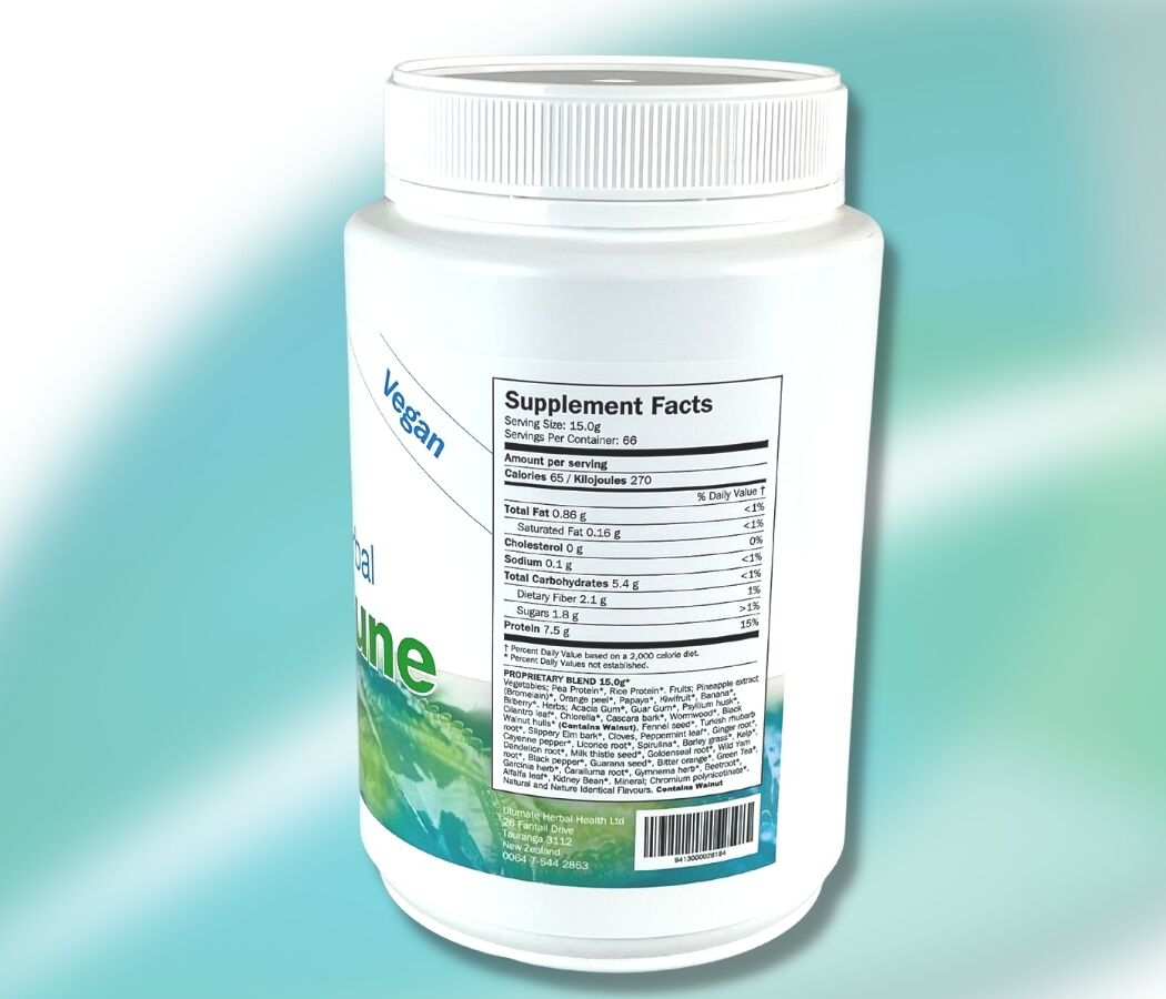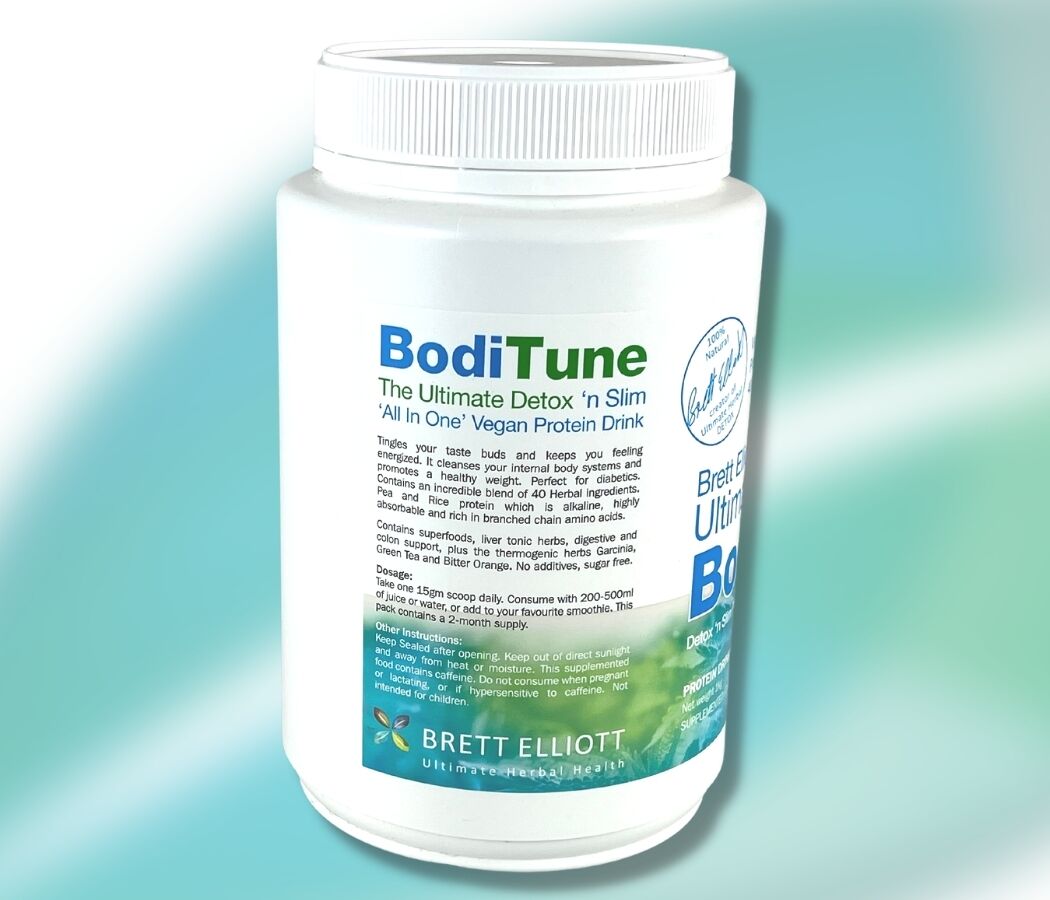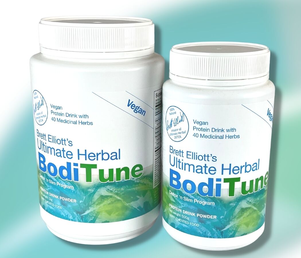 This is equivalent to one capsule from every bottle in the Ultimate Herbal DETOX and Ultimate Herbal SLIM programs. Plus you get over 7.5 grams of high-quality protein per serve. BodiTune Detox ‘n Slim drink contains all 40 herbs from both the Ultimate Herbal DETOX, Ultimate Herbal BodiClenz, and Ultimate Herbal SLIM programs, all combined into one convenient and delicious vegan drink powder.