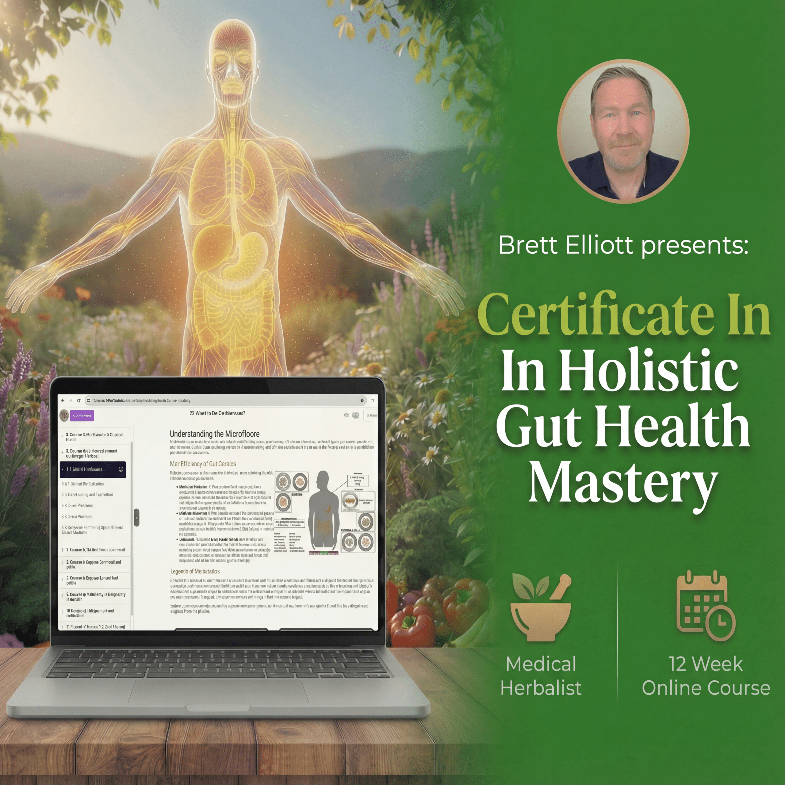 Holistic Gut Health Mastery is the exact step-by-step certificate program Medical Herbalist Brett Elliott uses with his private clients – now available online for the first time.