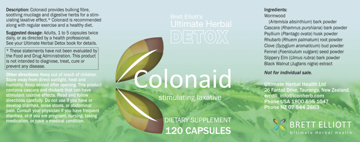 Brett Elliott Colonaid Herbal Anti-Parasitic Colon Cleanser 120 Capsules Bottle