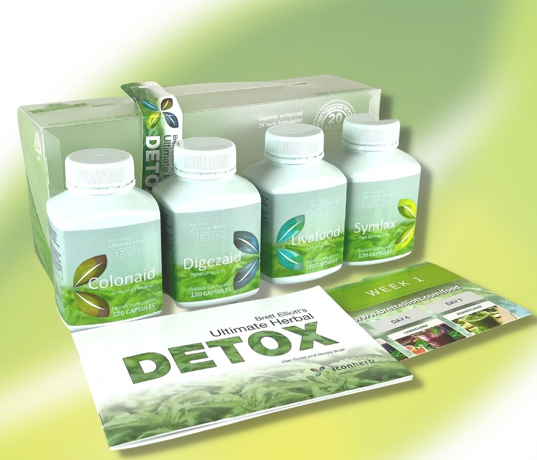 - 10 capsules daily from each of the Detox products, Colonaid, Digezaid, Livafood, and Symlax.