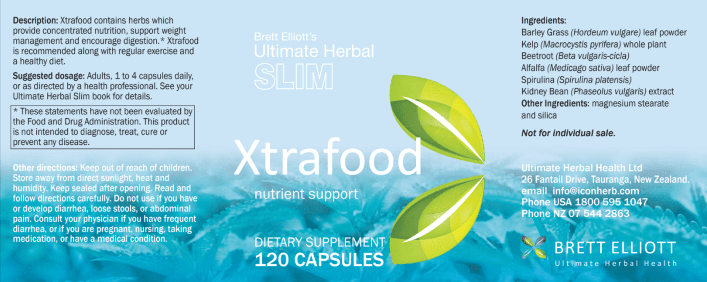 Brett Elliott XtraFood Herbal Multi-Nutrient Support 120 Capsules Bottle